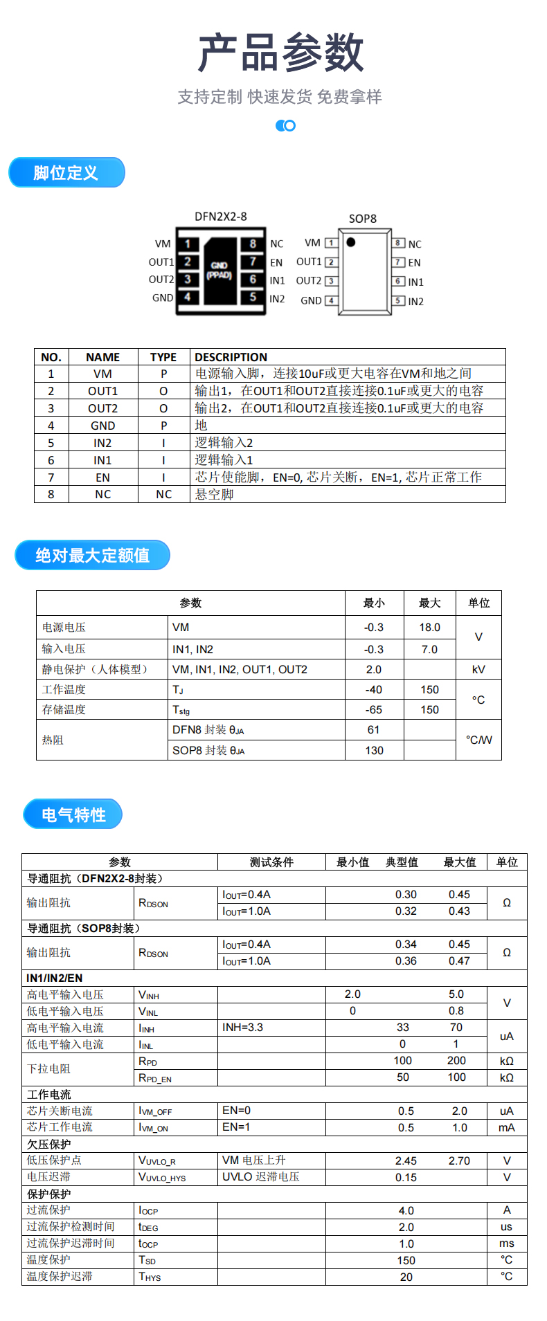 * 持续电流1.8A,峰值3.0A
